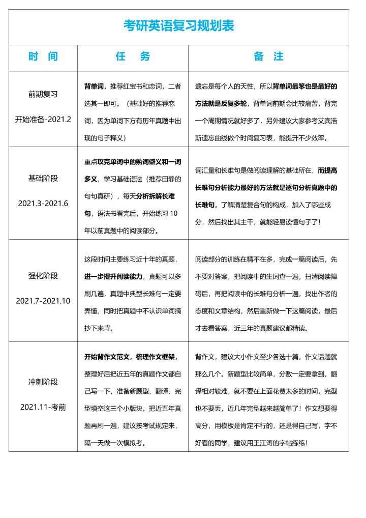 特别是英语基础不好、需要考数学或者专业课要背诵很多东西的同学,一定要早点开始准备,为了帮助大家少走弯路,早点进入复习状态,学长把考研的一些基本常识和全年复习规划时间都整理好了,满满的干货,小伙伴们一定要认真看。