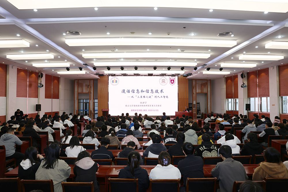 回校期间,祝世宁院士应邀作了题为《漫话信息和现代信息技术——从“三星堆之迷”到人工智能》的学术报告。报告回顾了信息和信息技术发展的历史,从三星堆文明的猜想到现代科学技术机器识别的符号,生动讲述了实际数据承载抽象信息的发展变化。祝世宁院士还就信息技术发展现状、未来与大家进行了互动交流。报告内容面向科技前沿、面向国家重大战略需求,充分拓展了师生的学术视野。