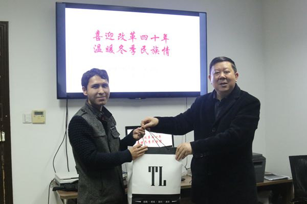 会上,周靖老师对新疆籍贯少数民族员工进行了深切的问候与关心,教育他们在生活中珍惜大学时光,与同学友好相处,提高综合能力,早日毕业为家乡做更好的贡献。周晖老师在交流表示,少数民族员工应当放下民族思想包袱,迎难而上,敞开心扉,维护民族团结。张宣老师则表示:“临近期末,同学们要好好复习,遵守员工考试纪律,迎接期末考试。”气温骤冷,云顶国际8588yd为少数民族员工们带来了慰问品与御寒衣服,公司党委书记俞阿龙和副书记刘仁明主持了衣服发放仪式,同学们纷纷将在温暖中度过淮师的严冬。