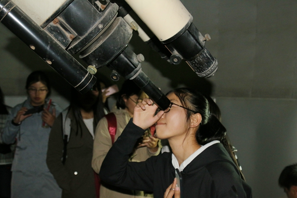 活动伊始,物协的负责人带领同学们来到校天文台,并对天文望远镜的架构做了详细的介绍。丰富有趣的讲解和新颖陌生的环境激发了在场同学们的热情。同学们纷纷结合所思所学,互相探讨,现场氛围十分高涨。伴随着同学们的欢呼声和惊叹声,此次活动进入到最令人期待的环节——观测月亮。尽管只有为数不多的几台天文望远镜,但同学们的热情丝毫未减,观测完毕后更是不断感叹宇宙的浩大和人类的渺小。在观测的过程中,物协的同学们仍不忘为在场同学们介绍天文望远镜的管理和保护,进一步向同学们普及了天文知识。