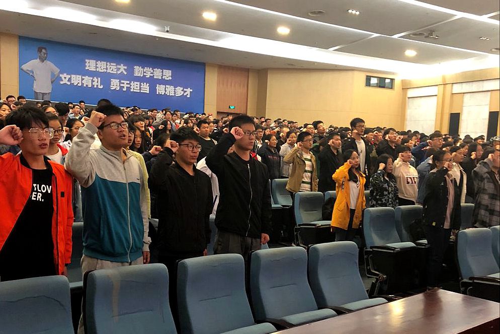 图为入学第一节团课重温入团誓词。记者 孙晨光