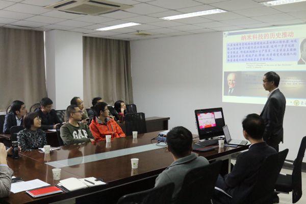 紧接着徐教授以他幽默风趣的语言着重介绍了“核壳纳米结构”整合不同材料的优势、增强光电性能、拓展功能应用等学术前沿,指出合理设计和可控合成核壳纳米结构对其性质和功能的调控具有重要意义。针对实现纳米级别的操作和控制壳层晶相难题,徐教授向与会师生介绍了自己带领的科研团队在此领域的学术贡献,团队以有序生长的ZnO纳米线阵列为模板,采用经典的磁控溅射方法,在单晶ZnO纳米核芯上生长了厚度均匀、形貌可控的单晶、多晶和非晶,金属、半导体、绝缘体等不同的壳层结构,实现了紫外激光增强、深紫外探测、生物传感等多种功能,展示了独特的科学研究的思路和方法。