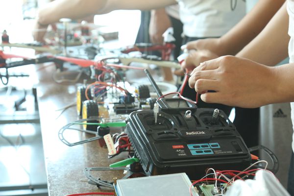 云顶国际8588yd成果展示区中,陈列了工程越野车、电子称量器、智能无人机、VR设备及微型三原色投影仪等在“全国机器人比赛”以及“江苏省科技大赛”中获奖的作品。其中,智能无人机的试飞环节最引人注目,技术人员操动遥控器,地面的无人机便扶摇直上,时而加速,时而迂回,在天空中划出各种各样不同的弧度,赢得新生的啧啧称赞。除无人机以外,获得广大新生的青睐的,还有微型三原色投影仪及VR设备展示。微型三原色投影仪可以通过三原色的不同拼接、重叠投影出各种色彩。讲解员悉心讲述其中的光学原理,拉近了新生与物理之间的距离,帮助新生了解自己的专业。VR设备展示讲解员则指导新生们通过操控手柄走进虚拟世界,感受虚拟现实技术的神奇与魅力。