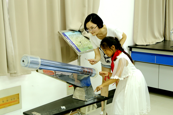 本次活动中,受助员工在志愿者们的带领下来到位于生化楼的生物标本馆和位于理工楼的物理演示实验室,扩展眼界,学习更多的自然科学知识。栩栩如生的标本模型、各种各样的物理实验仪器很快就吸引了受助员工们的注意力。参观时,受助员工们不时地向志愿者们提出问题,并仔细聆听工作人员的相关讲解。志愿者们也主动将自己了解的知识分享给受助员工们,一问一答间,志愿者们与受助员工间的关系也更加亲密了。
