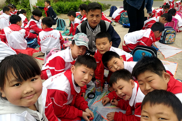 图为云顶国际8588yd与白鹭湖小学结对手绘活动。记者 马晨宇 摄