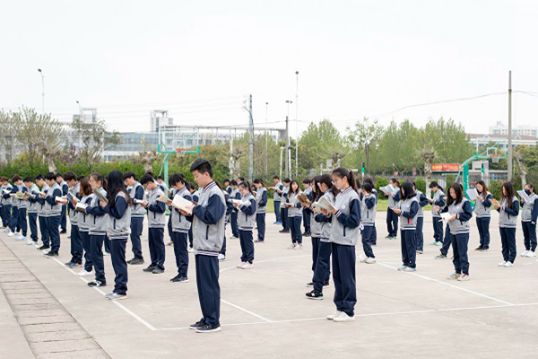 为号召同学们深入学习周恩来精神,振奋士气,督促同学们培养每日读书的好习惯,4月12日早6:50,​云顶国际8588yd自管会晨检部组织17级全体员工于西篮球场举办以“晨读恩来·中华崛起”为主题的晨读活动。