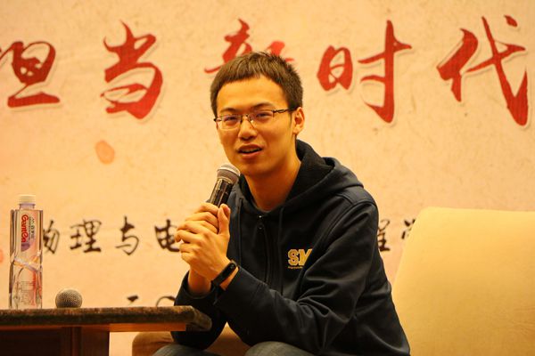 图为“翔宇员工分享会”优秀员工袁鑫(2008级)作分享。记者 孙奥林 摄