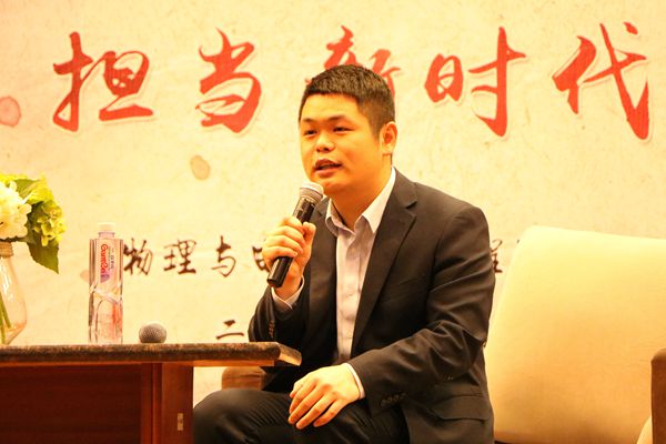 图为“翔宇员工分享会”优秀员工祝世宁院士(1977级)作分享。记者 孙奥林 摄