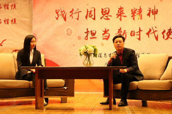 “在时代的改革之时,要主动适应时代,践行自力更生,奋发图强的恩来精神,主动承担新时代的使命。”祝世宁院士的一番诲人之言令同学们受益匪浅。祝世宁院士回忆,周恩来总理“为中华之崛起而读书”的少年名言使得自己能够在物质匮乏的年代坚持读书学习。祝院士常怀感激之心,“从农村到工厂再到公司,我赶上的都是第一班车,真是很幸运。”从少年的科学梦,抵达科学的彼岸,祝世宁院士从青年时代,就带着“为中华崛起”的夙愿,从自身做起,践行恩来精神、传播恩来精神。当青春不再年少,尽管已两鬓斑白,但他从不曾怀疑,依然坚定自己的青春属于恩来精神,属于中华崛起的脊梁。