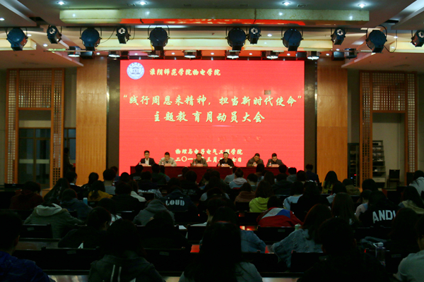 动员会由朱笔老师主持。会议伊始,卜阳老师宣读了主题教育月活动方案,此次教育月活动分别从公司、班级、公寓、网络四个层面开展,号召同学们以多种形式组织活动,积极营造主题教育月的浓厚氛围,增强教育实效性。接着,公司团委书记陈华庆对主题教育月活动方案进行了详细解读,他表示,此次主题教育月活动以当代老员工喜闻乐见的活动形式将周恩来精神与习近平新时代中国特色社会主义思想相结合,引领员工树立远大理想抱负和奋进目标,认知时代使命,践行新思想。他希望同学们做人做事都要以周总理为榜样,严于律己,勇于担当,不忘初心,牢记使命,担当民族复兴大任。会议中,学工办徐寅寅老师还宣读2017-2018第一学期文明宿舍、国家奖学金和国家励志奖学金的获奖名单。同时,周扬老师作新学期的文明宿舍创建动员报告,并提出具体要求和工作部署。