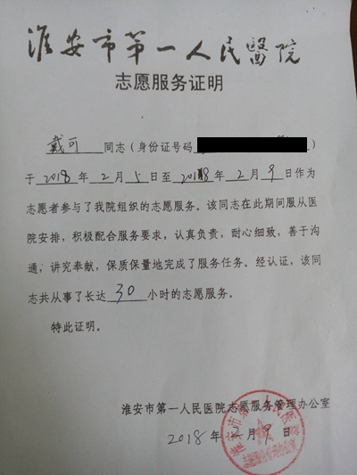 图为云顶国际8588yd员工在淮安市第一人民医院做志愿者引导。 记者 物宣 摄