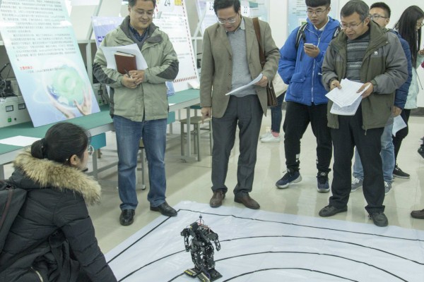 图为实验科技作品创新创意大赛现场。记者 姚杰 摄