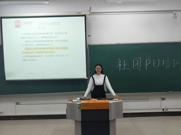 PU活动是相对于课堂教学而言的,它又不限于教材,不需要考试,且活动丰富多彩,是老员工素质教育不可或缺的部分。培训会的最后,欧玲同学强调,PU平台作为第二课堂是本科生无纸质相关成绩的重要证明,希望各班团支书积极开展工作,推动PU平台建设。