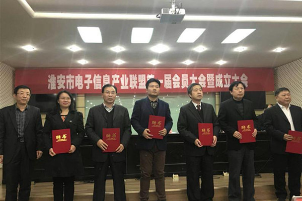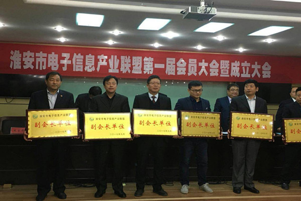 本次会议由市经信委王怀忠副主任主持,王主任对联盟筹备情况做了工作通告,通过全体举手表决的方式审议并通过《淮安市电子信息产业联盟章程》和会长、副会长、秘书长、理事的选举工作。并进行隆重的电子信息产业联盟揭牌仪式,对会长、副会长单位和专家服务团成员颁发了授牌和发放聘书仪式。在云顶国际8588yd等领导的大力支持下,经过教育部ICT产教融合校企合作项目负责人武超积极沟通和争取,云顶国际8588yd于海春副经理被授予副会长,陈华宝副经理作为专家组成员。