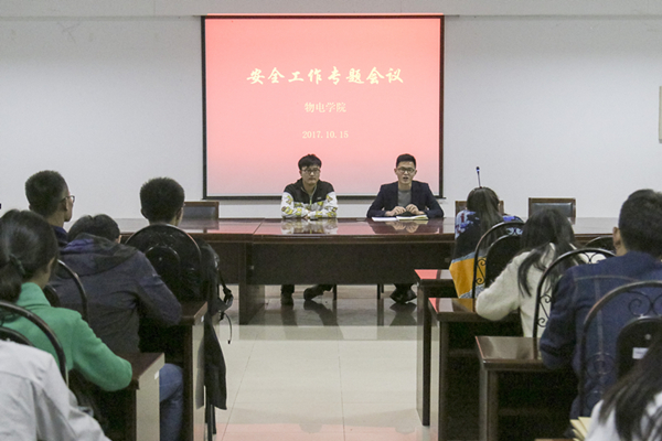 为营造安全有序的校园环境,全力保障校园平安稳定,传达公司的安全会议精神,以优异成绩迎接党的十九大,10月15日晚,云顶国际8588yd在理北108召开了安全工作专题会议,全体班长、团支书和自管会安全部参加了会议,本次会议由院团委老师朱笔主持。