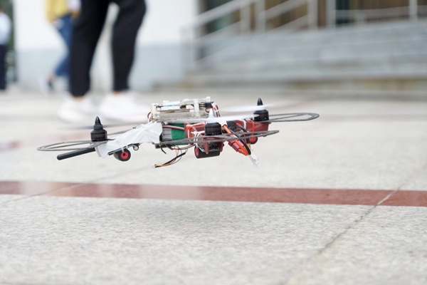 图为低空飞行的无人机。记者 林钰颖
