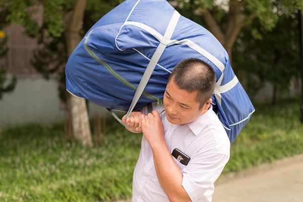 图为新生家长帮孩子搬行李。记者 石宇凡 摄