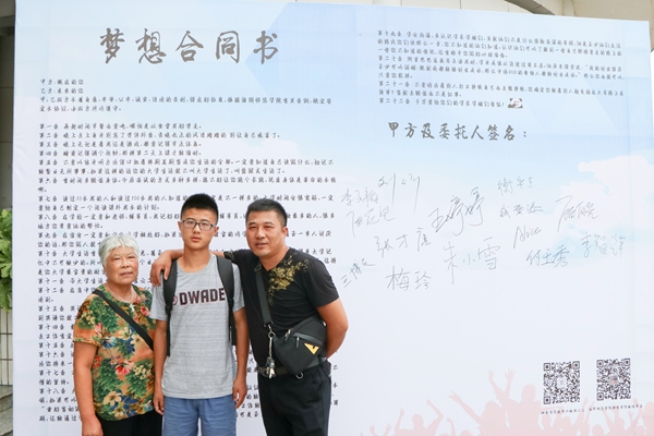 图为新生一家在“梦想合约书”前合影留念。记者 陈志超 摄