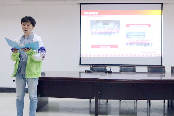 会议伊始,1602班团支书朱建秀从班级现状、创过程以及创建成果等方面对本班周班创建过程进行介绍。她的汇报语言生动,内容饱满,充分向在场同学展示了一个精神风貌积极向上的班级作为第一批物理定向师范班员工,她呼吁同学们秉总理之志,弘翔宇精神,以“德高为师,身正为范”约束自己。这一观点赢得了与会人员的一致认可。随后,各班代表通过赏心悦目的PPT依次展开汇报:参观周恩来纪念馆、举办周恩来读书会、开展海棠花开微电台……各创建班级彰显出不同的特色,用不同的方式诠释着相同的目标,用丰富多彩的活动践行创建周恩来班级的诺言。