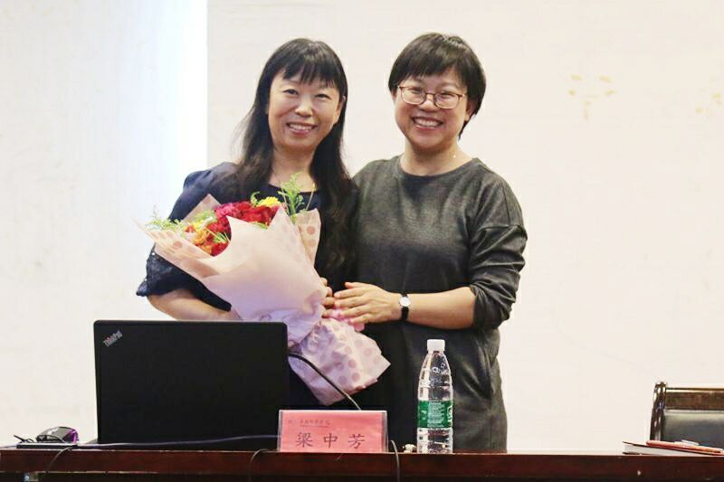 图为梁中芳和张丽老师合影。记者 姜龙 摄