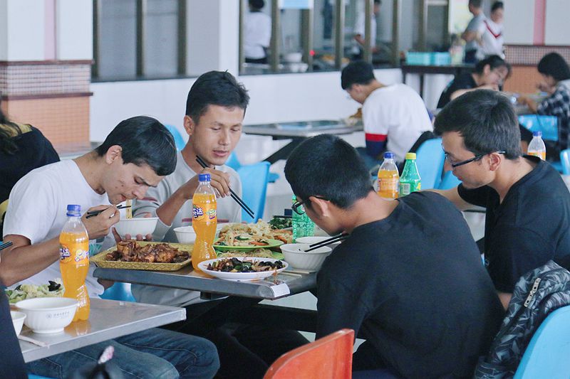 图为老师和少数民族员工共用午餐。记者 叶晨兮