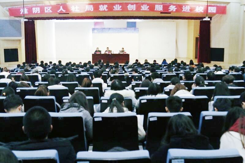 接下来的主讲人分别是来自淮阴区人社局就业创业管理服务中心的杨春云老师和徐翔老师。杨老师着重介绍了淮阴区人社局对老员工在校创业所进行相关工作,为同学们介绍了一些适合他们的企业公司,为他们明确了自己的职业发展方向。徐翔老师则着重讲述了关于“就业”的三个概念——学习档案、报到证、党组织关系转移,让同学们进一步了解就业的相关信息。最后,本次公开课在热烈的掌声中落幕。