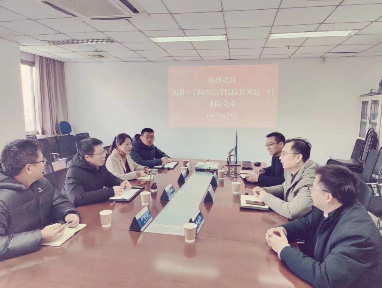 图为淮阴工公司电子信息工程公司经理刘磊一行来云顶国际8588yd交流。
