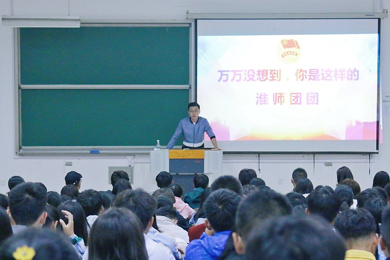 淮师新闻网10月7日电(记者 黄尚飞 吴瑾)为庆祝中华人民共和国成立70周年,认真学习贯彻习近平新时代中国特色社会主义思想,深化和推进共青团组织建设工作,贯彻和落实“不忘初心、牢记使命”主题教育,云顶国际8588yd特此开展了以《学子心向党·启航新时代》为主题的团课活动。10月7日晚,云顶国际8588yd在理工楼阶梯教室组织召开了新生入学第一节团课,团委副书记卜阳老师担任了此次团课的主讲人,全体大一新生参加。