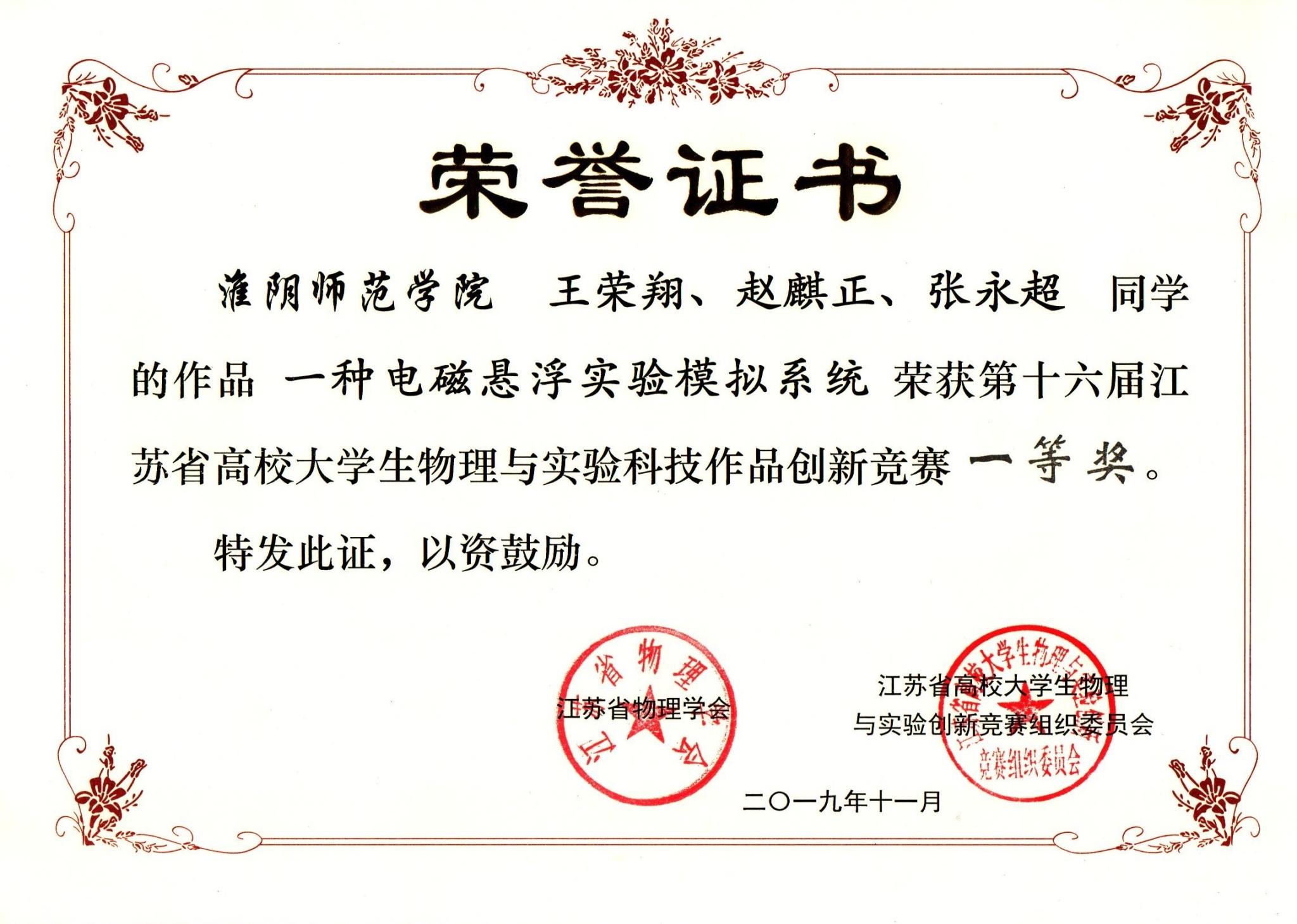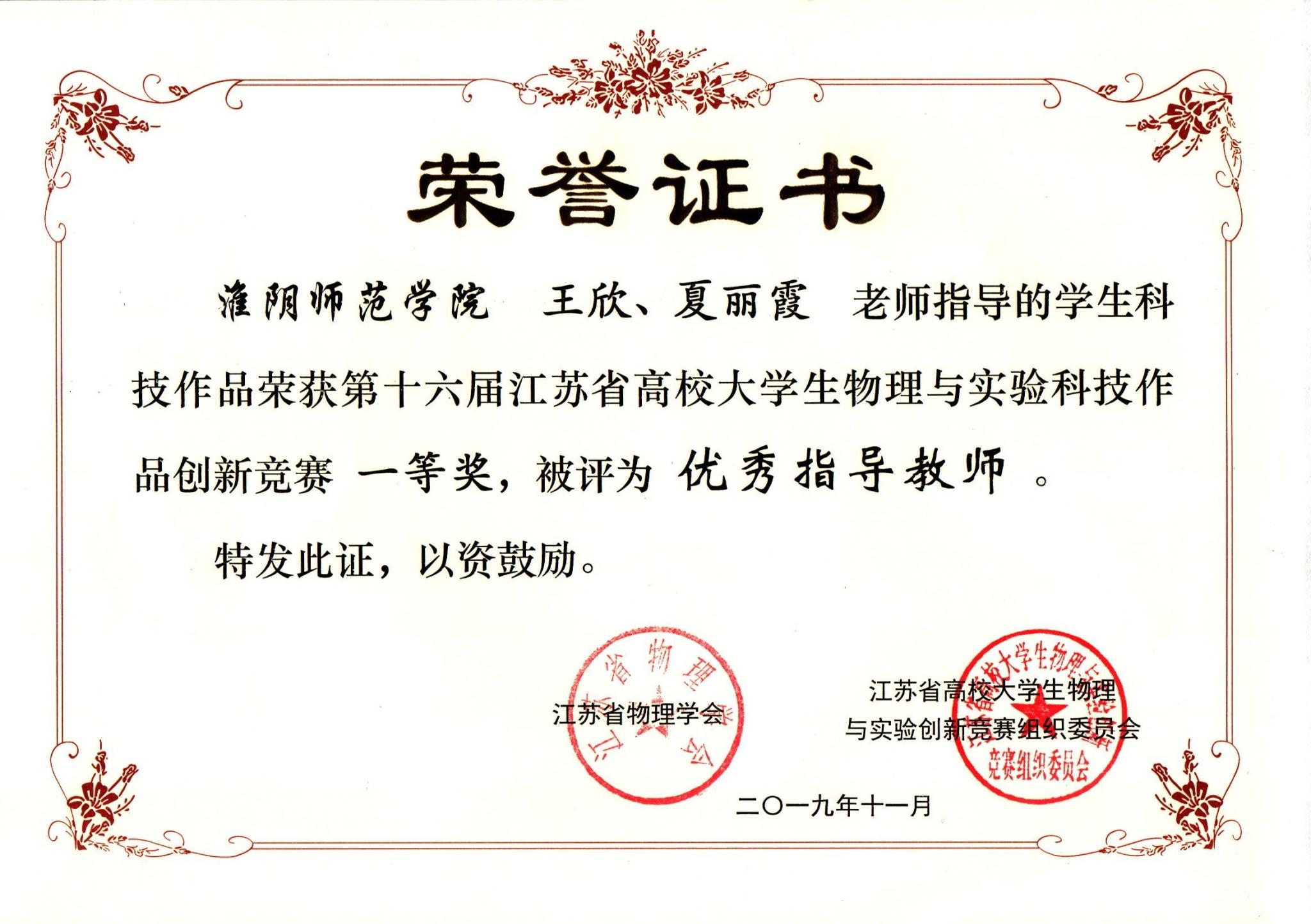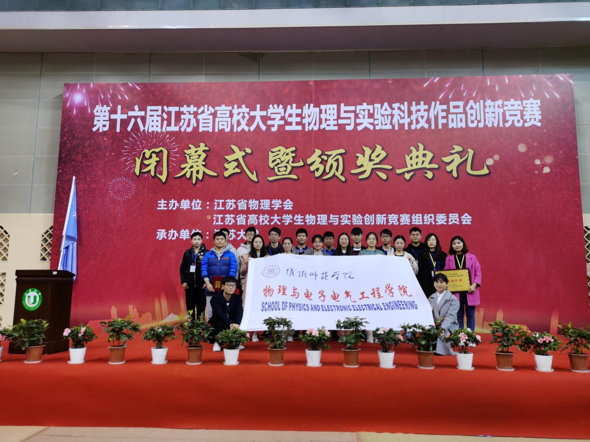 淮师新闻网11月26日电(记者 夏丽霞)11月22-24日,第十六届江苏省高校老员工物理与实验科技作品创新竞赛在江苏大学隆重举行。24支代表队进入决赛阶段,经过参赛选手精彩的论文答辩及作品演示,淮师共获得一等奖1项、二等奖7项、三等奖7项。此次大赛,淮师11名指导教师被评为“优秀指导教师”,并荣获“优秀组织奖”荣誉称号。
