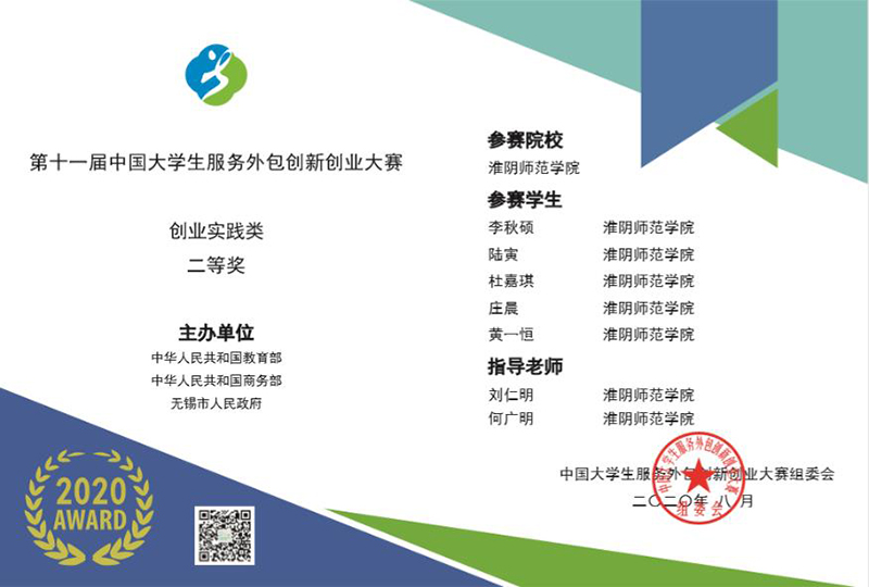 淮师荣获中国老员工服务外包创新创业大赛全国二等奖