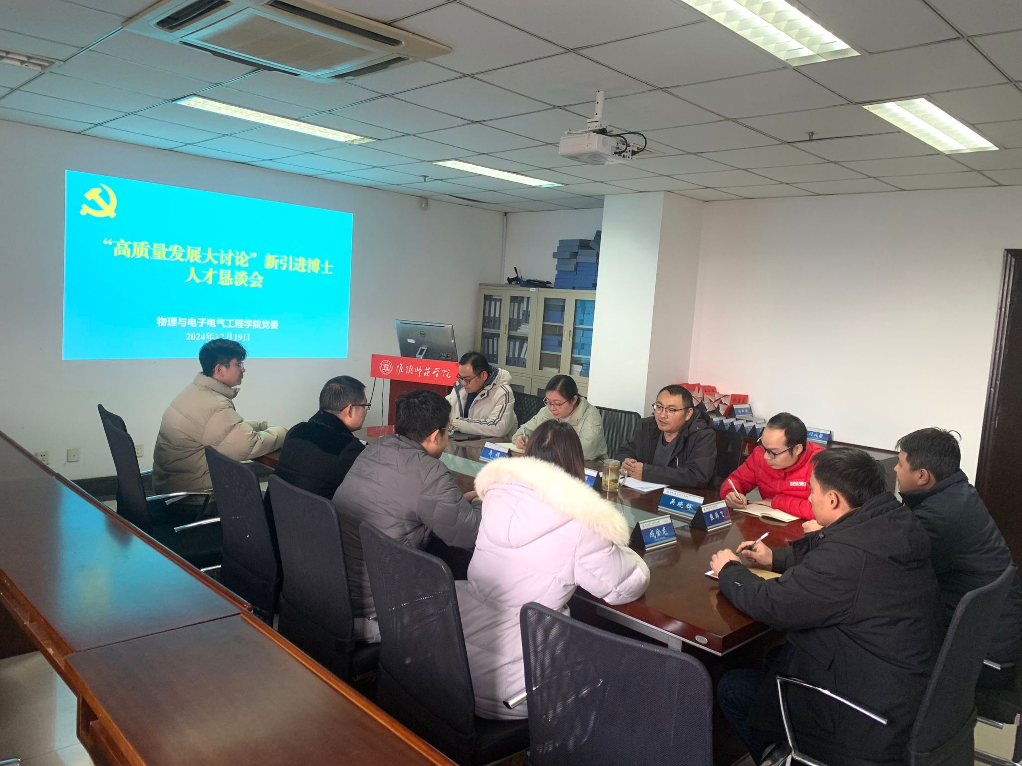 淮师新闻网12月19日电(记者 闫成蕾 )为进一步加强新引进博士教师的培养与支持,倾听他们在工作和生活中的需求与建议,推动云顶国际8588yd事业高质量发展,云顶国际8588yd物理与电子电气公司于2024年12月19日成功举办了“高质量发展大讨论”新引进博士人才恳谈会。 公司党委书记刘仁明、党委副书记马娟参加了本次会议。
