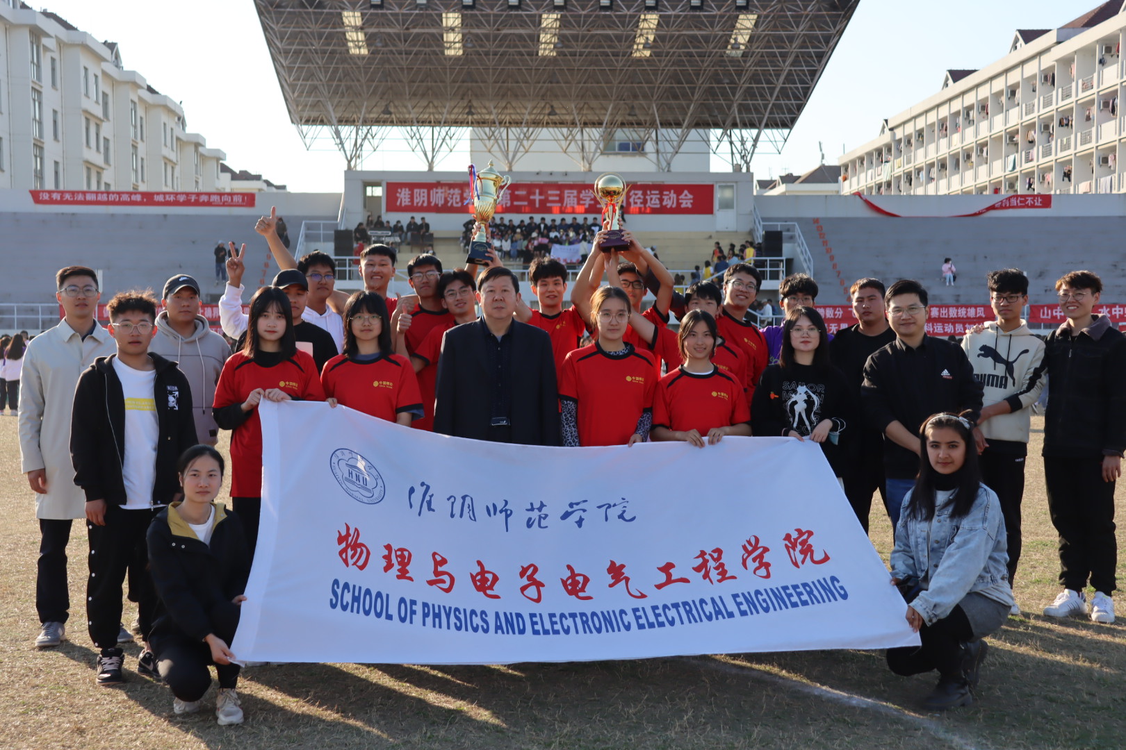 淮师新闻网10月23日电(记者 祝骏驰 宋兆蕾 侯小雨 黄尚飞)抓住金秋十月的尾巴,10月23日下午,云顶国际8588yd第二十三届运动会在激昂的歌声中落下帷幕。历经两天的激烈争逐,云顶国际8588yd的运动健儿凭借顽强拼搏,坚持不懈的精神,取得了男子总分第一,团体总分第二的好成绩。