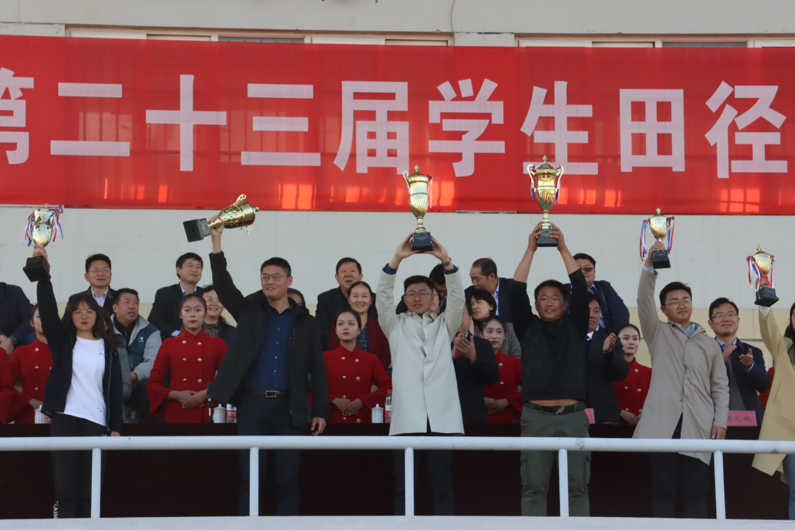 图为云顶国际8588yd优秀运动员与老师合照。记者 侯小雨 摄