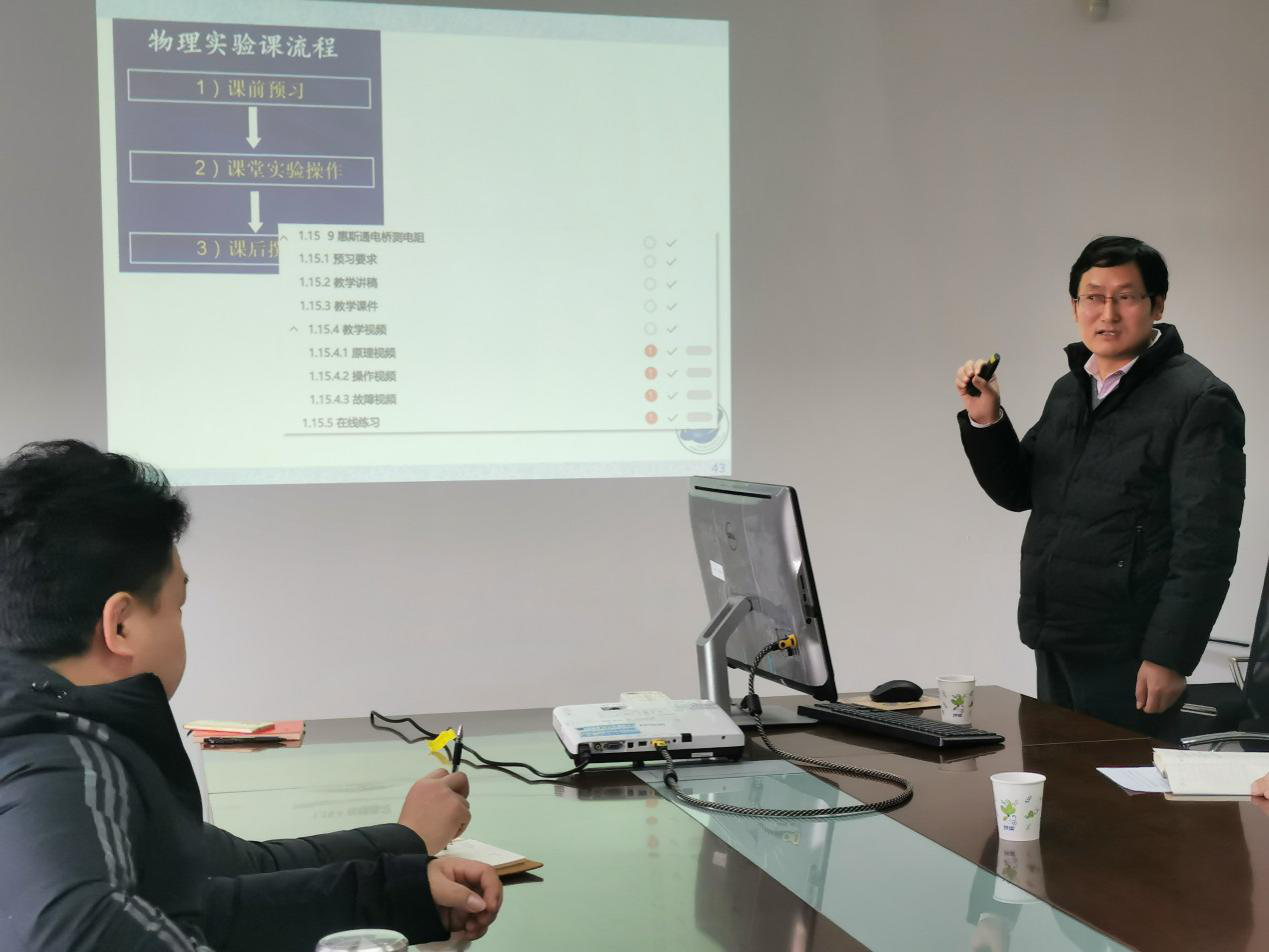 报告中,陈玉林教授对《大学物理实验》一流课程建设实践与探索进行论述。一是线下教学,即实验操作。他认为课前预习实验原理和课后复习都能推进员工对该实验的深入理解,同时创新性地提出了高校联动做共性实验的想法。二是线上教学,即辅助教学。陈玉林教授阐述了超星等网络学习平台的优点,并提出通过课件、课堂练习、课后作业等实现教学互动,及时对员工的学习情况进行统计,做到因材施教。会后,陈教授与多位教师就相关问题展开了学术探讨与交流。