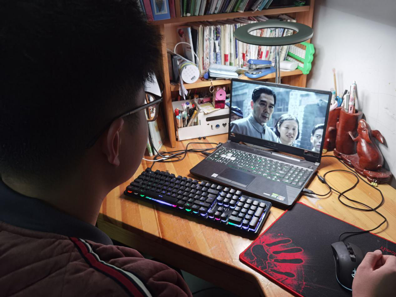 图为同学们观看周恩来纪录片。记者 侯梦璐 摄