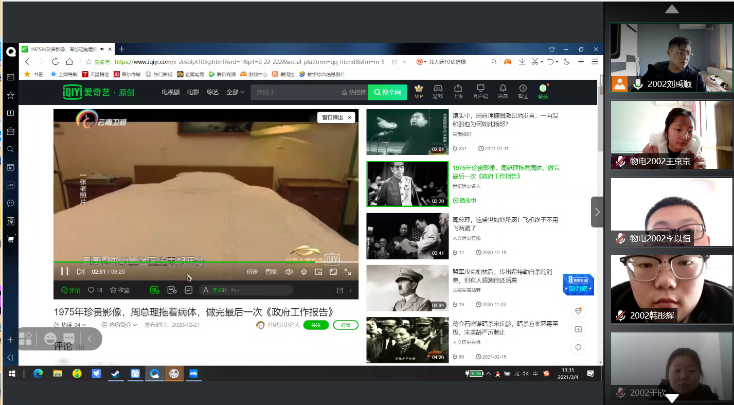 即使天各一方也阻挡不了同学们缅怀周总理的热情,念此云顶国际8588yd以班级为单位,由班长带领同学线上交流学习周恩来精神以及习近平总书记在纪念周恩来同志诞辰120周年座谈会上的讲话,在网络会议中畅谈对总理的怀念之情。