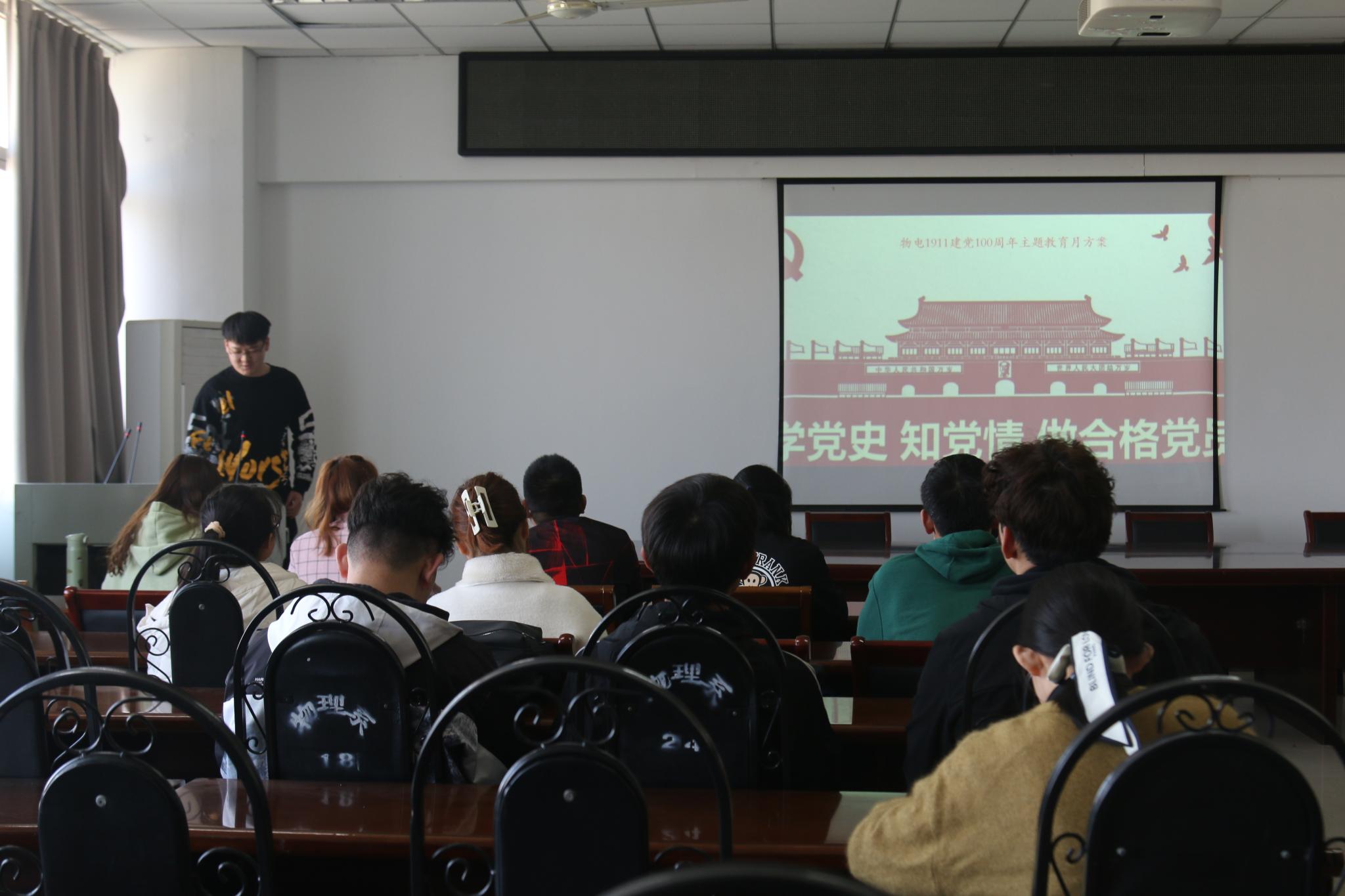 评比会伊始,由陈老师进行简短的开场陈词,然后各班班长依次进行汇报。本次评比会积极响应教育月“致敬百年路,坚定跟党走”的主题,准确把握目标要求,落实贯穿主题教育全过程,确保主题教育取得实实在在的成效。参与班级在认真进行主题教育月方案PPT汇报的同时,还补充宣讲了多种多样的活动方案。其中,先进党员事例宣讲、红色励志影片观影、党史知识竞赛等一系列活动在增强主题教育月活动趣味性的同时,也进一步向同学们普及了党史相关知识。活动最后,陈老师告诫各班班长既要认真负责地开展主题教育活动,还要积极宣传党带领中国人民不忘初心、牢记使命、艰苦奋斗的光辉历史。
