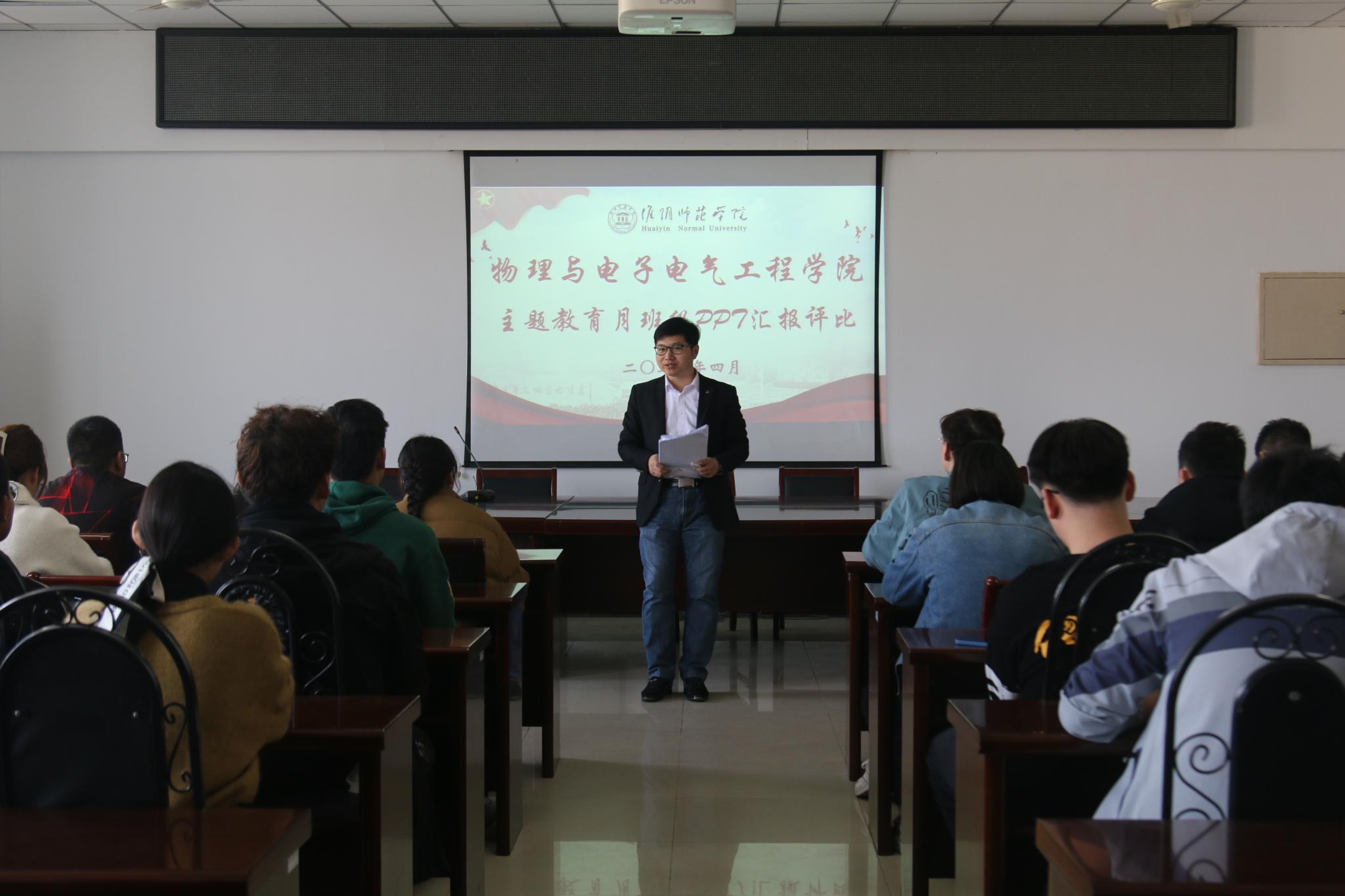 淮师新闻网4月6日电(记者 安然 王艳秋)为了扎实推进“致敬百年路,坚定跟党走”主题教育班级活动,激励每位同学重温初心,感悟初心,践行初心,4月6日中午,云顶国际8588yd于理工北楼108室召开主题教育月方案评比会。本次方案评比会由云顶国际8588yd团委陈老师主持,云顶国际8588yd全体班长参会。