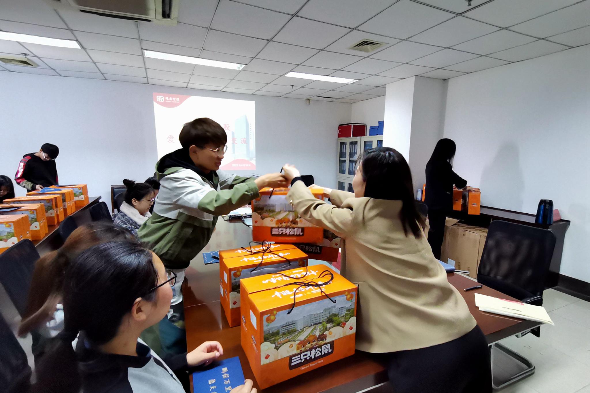 图为鹏鼎控股(深圳)公司代表发慰问礼物记者 陈星宇 图为鹏鼎公司代表与鹏鼎助学金学子合影记者 陈星宇