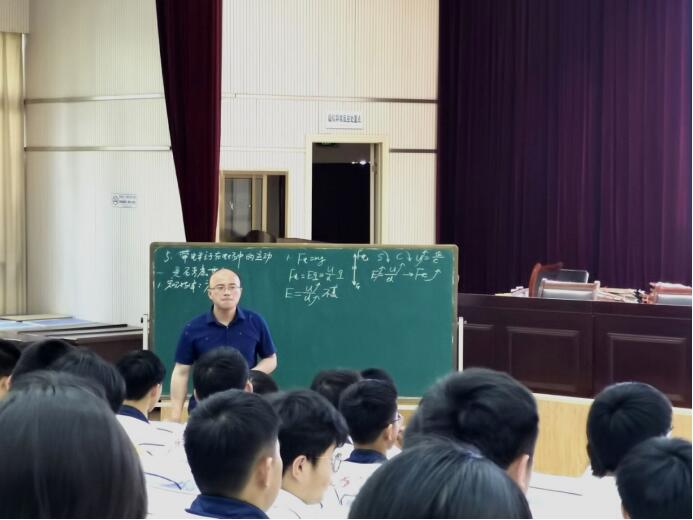 第一节课由陈佩龙老师为高一员工讲授《带电粒子在匀强电场中的运动》的相关内容。陈老师首先通过匀强电场中带电油滴保持静止的例题进行知识点回顾,接着以例题为延伸,点出解决此类问题的两类方法,并针对课堂当中所讲内容进行训练,在课程最后,由陈佩龙老师进行总结归纳。陈老师上课井井有条,合理运用课堂时间,实现了知识点与例题的相互对应,使同学们在运用当中更显得心应手。