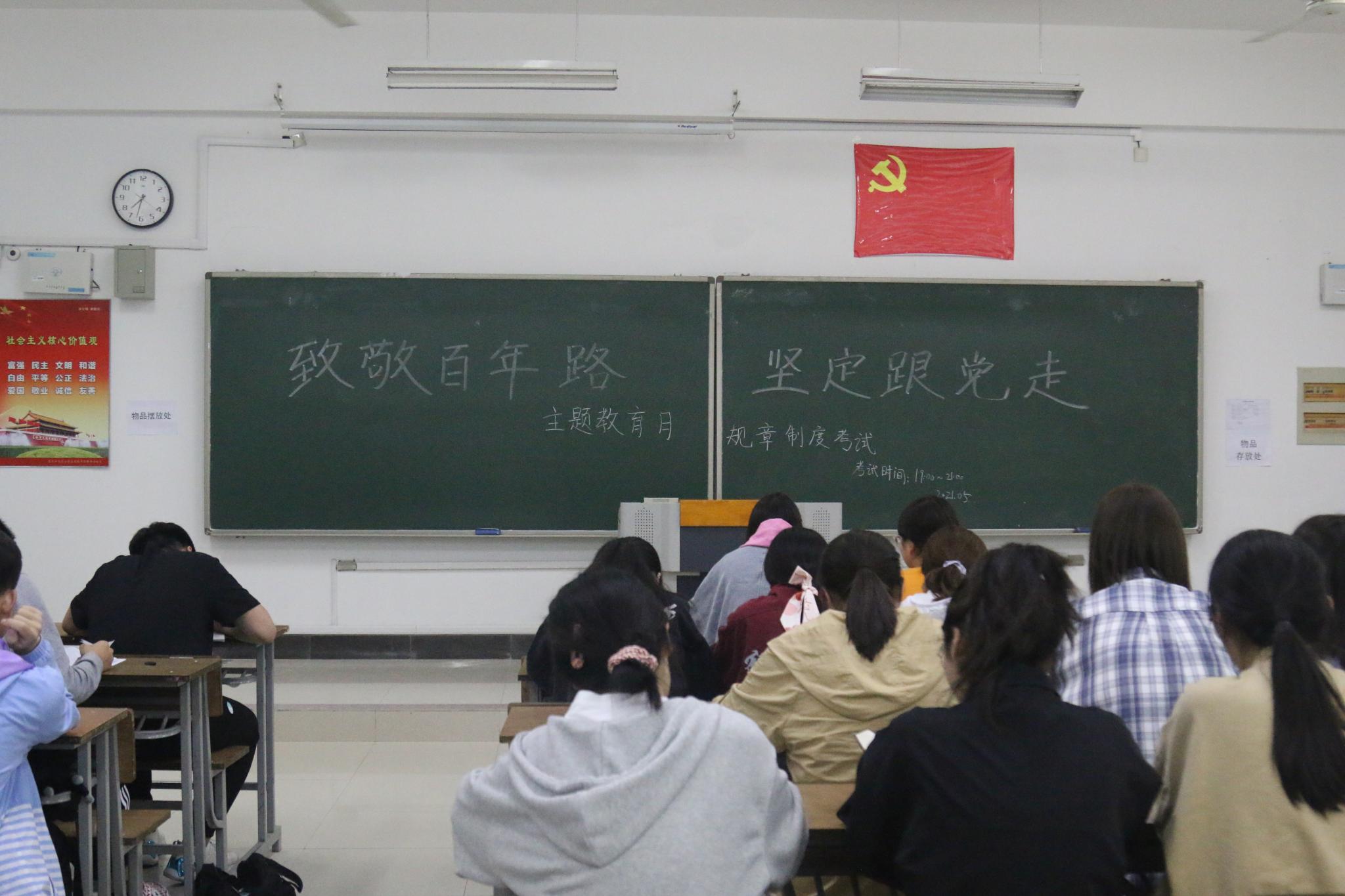 铃声响起,本次考试便拉开了帷幕,监考人员依次分发试卷,同学们拿到试卷后便专心答题。本次考试采取闭卷的形式,主要考察同学们对党史知识和《云顶国际8588yd规章制度》中的内容的了解程度,其中涉及奖学金的评比方法、宿舍安全管理规定、违纪处分的方法、员工考勤细则等,另外还包括党史教育的基本题目。经过充分的考前准备,同学们在考试中严格遵守考试纪律,胸有成竹地写下自己的答案,相信同学们定能在本次考中取得优异成绩。