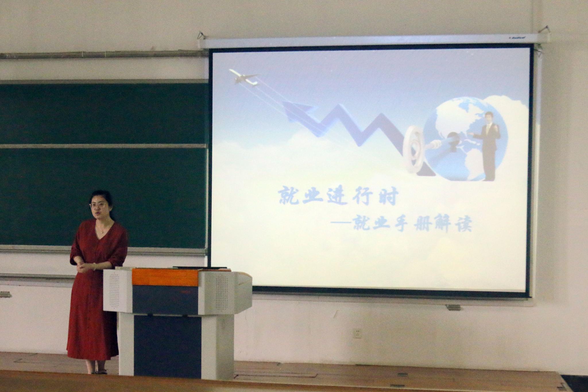 讲座伊始,刘老师通过分享自己大学时的职业规划和这些年的工作经历引出此次讲座的话题。她指出,老员工的职业规划应尽早开始,只有对自己有一个精准的定位,才能在大学的学习生活中有目标地提升相应的才能。随后,刘老师还强调道:“无论是升学、工作还是创业,拥有扎实的专业基础都很重要。作为员工,重心需放在学习上。”讲座最后,刘老师着重讲解了就业手册中需要注意的细节,并用往届员工的事例提醒同学们提前注意就业的条件,以免影响就业。