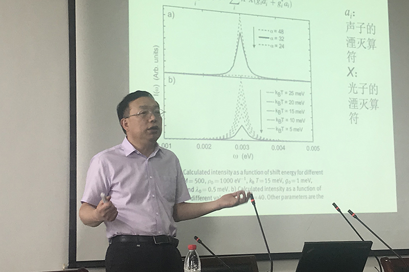 吴兴龙教授首先回顾了表面声学声子的研究历程以及纳米结构在光电器件、催化、传感和医疗等领域的广泛应用,他结合本人课题组的研究成果,向广大师生介绍了课题组对表面声学声子的研究成果,结果表明纳米颗粒的表面振动的频率、强度和偏振取决于纳米颗粒的尺寸、形貌和表面的受限程度,展现出丰富的特征。报告过程中还介绍了表面声学声子研究历史的发展过程中出现的许多争论性问题。报告特别讨论了作为无损检测的手段在纳米颗粒尺寸表征和太赫兹发射上的应用。