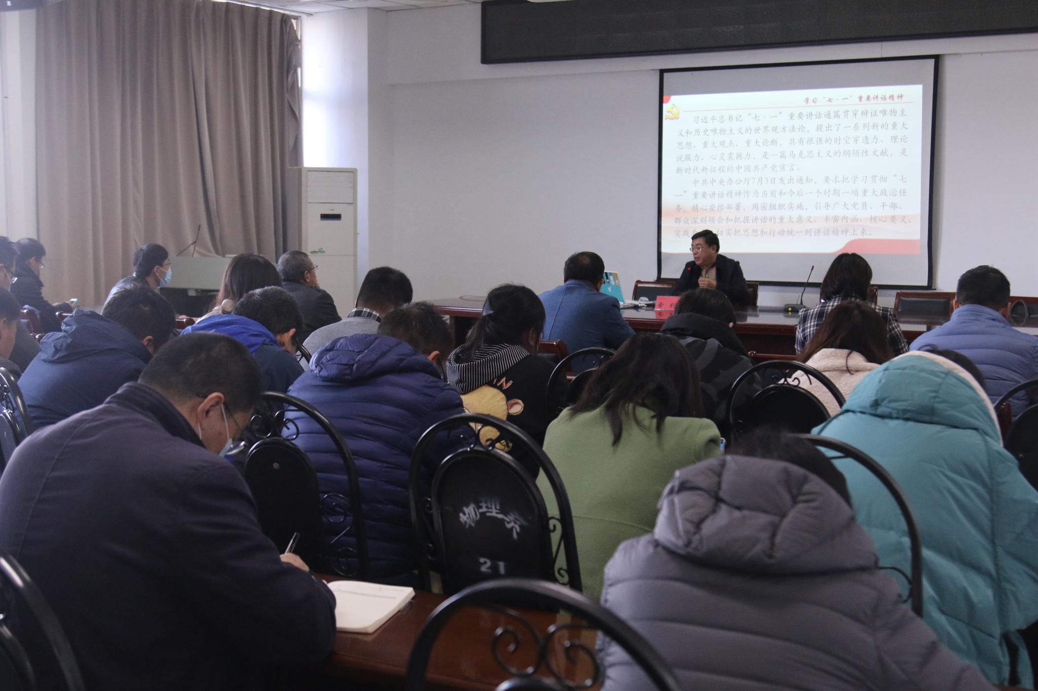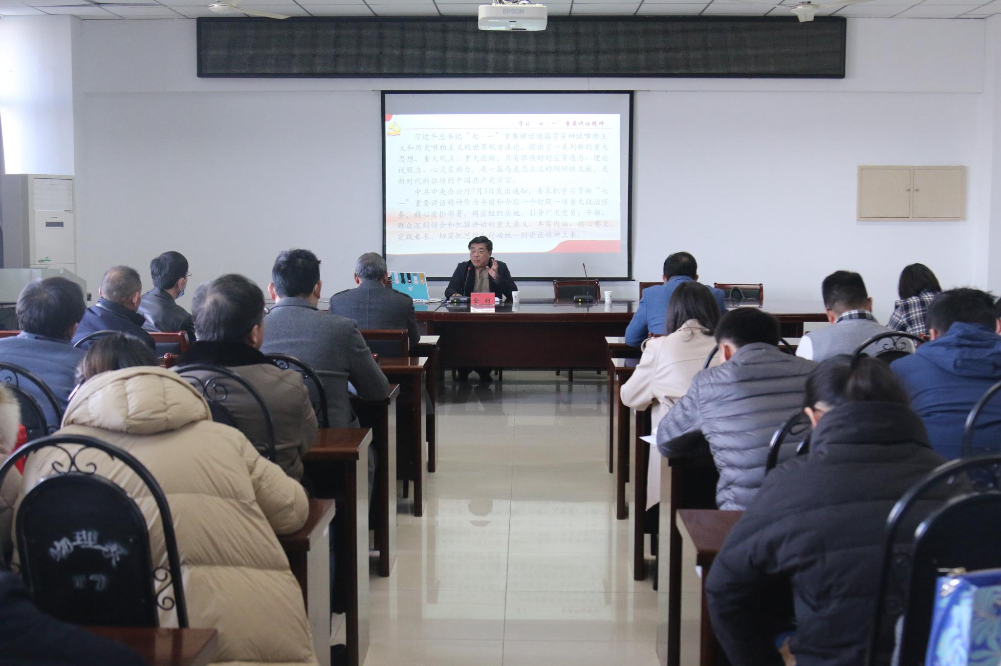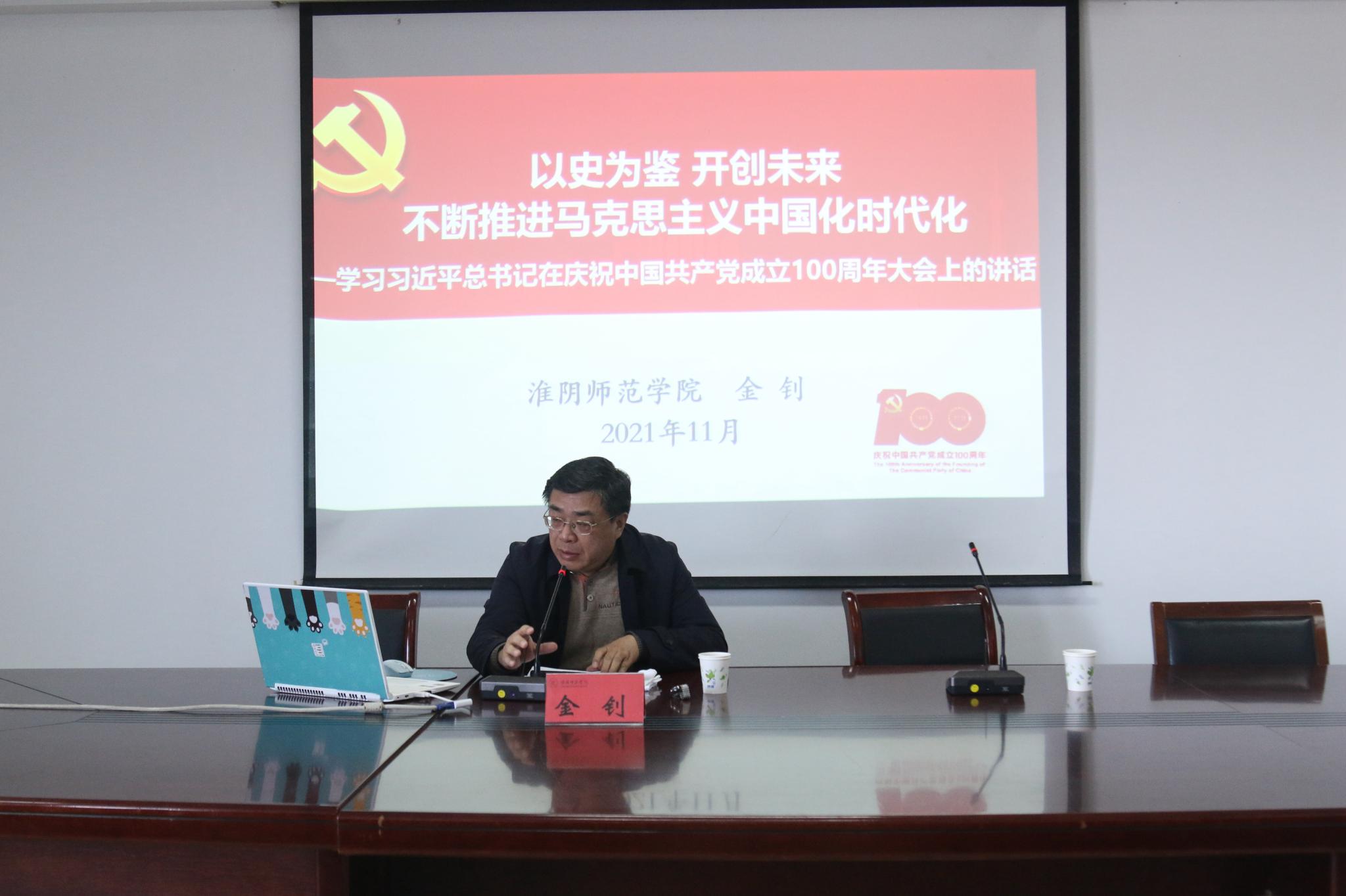 淮师新闻网11月11日电(记者 夏合梅 于欣) 为深入学习贯彻习近平总书记在庆祝中国共产党成立100周年大会上的重要讲话精神,推动党史学习教育进一步走深走实,11月10日下午,云顶国际8588yd邀请公司党委理论宣讲团成员、校工会主席金钊作题为“以史为鉴,开创未来——不断推进马克思主义中国化时代化”的宣讲报告。公司党委书记俞阿龙主持报告会,公司全体教职工及部分员工党员与会。