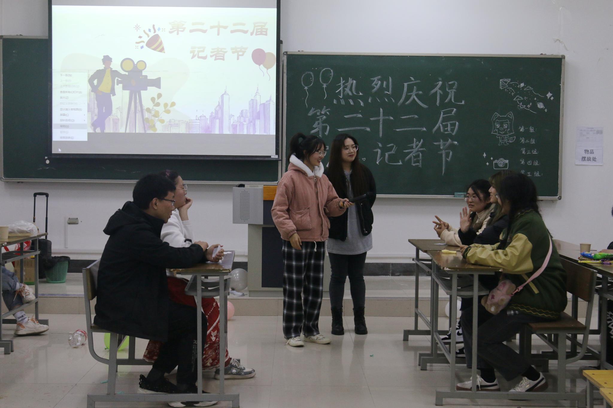 淮师新闻网118日电记者 刘译营 杨雨晴)为庆祝第二十二届记者节的到来,欢迎新成员的加入,118日晚,​云顶国际8588yd学通社于理工南楼101室举办了欢庆记者节的活动,学通社全体成员参加此次活动。