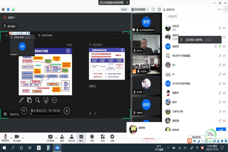 南京航空航天大学袁慎芳教授以《复合材料结构的健康监测》作了专题报告,指出先进飞行器对保障国防安全和国民经济发展具有重要的战略意义。新型飞行器的结构设计思想不断更新,复合材料由于具有比强度高、疲劳特性好等一系列优点,在飞行器结构上的应用越来越广泛,其用量已成为衡量飞行器是否先进的标志之一。结构健康监测术可以在飞行器复合材料结构的设计、实验和服役全过程中对其状态进行监测,从而实现健康管理和控制,因此可以保障复合材料的大比例应用、指导复合材料结构可靠性设计,提高结构的可靠性并降低维护成本。