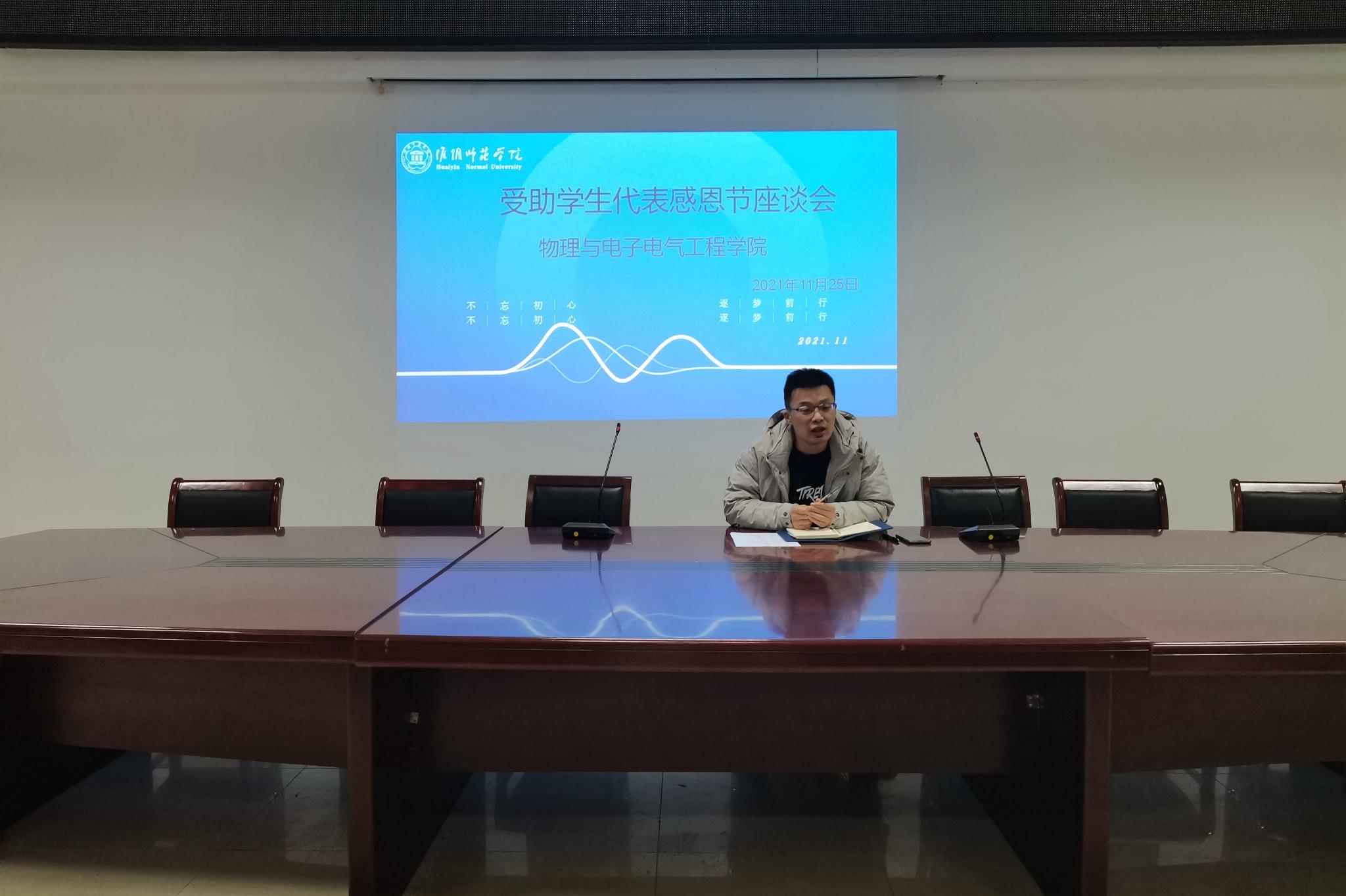 淮师新闻网11月25日电(记者 于欣)为加强对受助员工感恩和励志教育,促进受助员工积极健康成长,11月25日晚,云顶国际8588yd于理工北楼108室开展受助员工代表感恩节座谈会。本次座谈会由徐寅寅老师主持,18、19和20级受助员工代表参加座谈会。