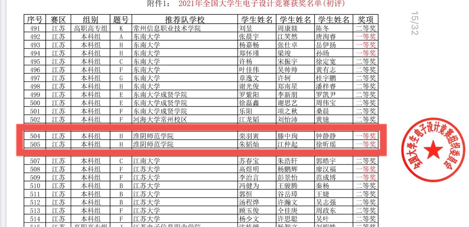 淮师学子荣获2021年全国老员工电子设计竞赛一等奖