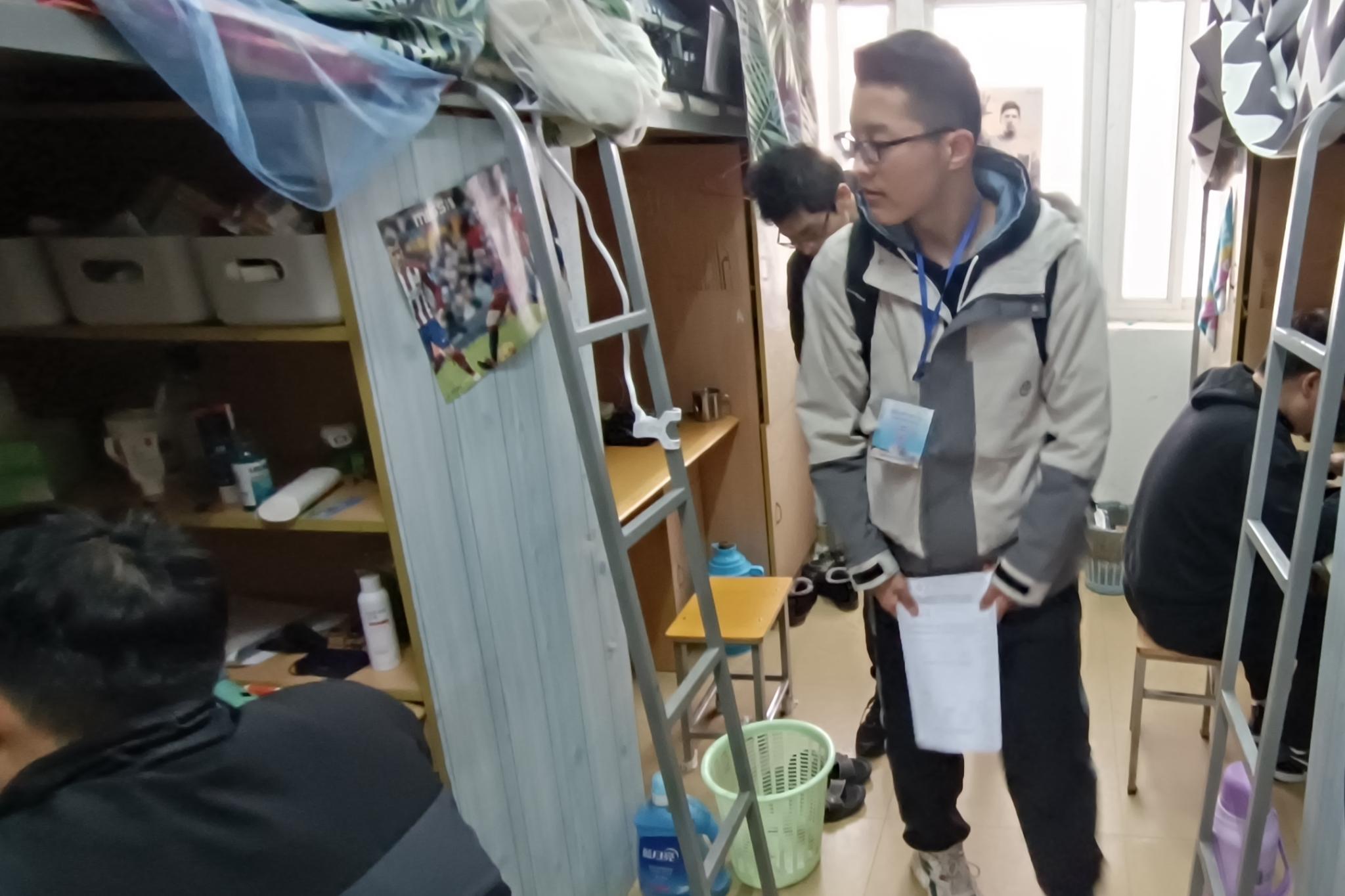 图为宿舍安全检查现场。记者 吕家伟