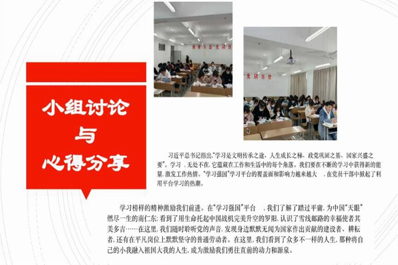 本次主题教育月以“学习在我 强国有我”为主题开展,从公司、班级、公寓、网络四位一体开展一系列活动。推进会上,员工会主要员工干部汇报了公司层面已开展的学风建设调查问卷、最美学习笔记评选、主题演讲比赛、国奖风采展、优秀员工风采展、考研经验分享会等活动。各班级负责人依次总结本班级在主题教育月中开展的各个活动的进展情况。其中,开展身边榜样展栏的活动反响尤为热烈,引导全院员工学习身边榜样,从身边小事做起,学习在我,强国有我,努力把核心价值观的要求变成日常的行为准则。推进会期间,各班级表现出极高的热情,同学们将主题教育月精神落到实处,并总结活动的得失,对今后的工作进行合理规划与展望。
